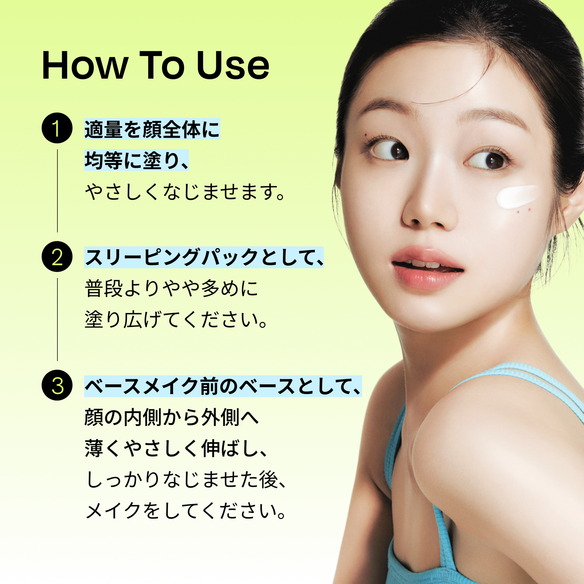 • 適量を手に取り、顔全体にやさしくのばした後、パッティングします。